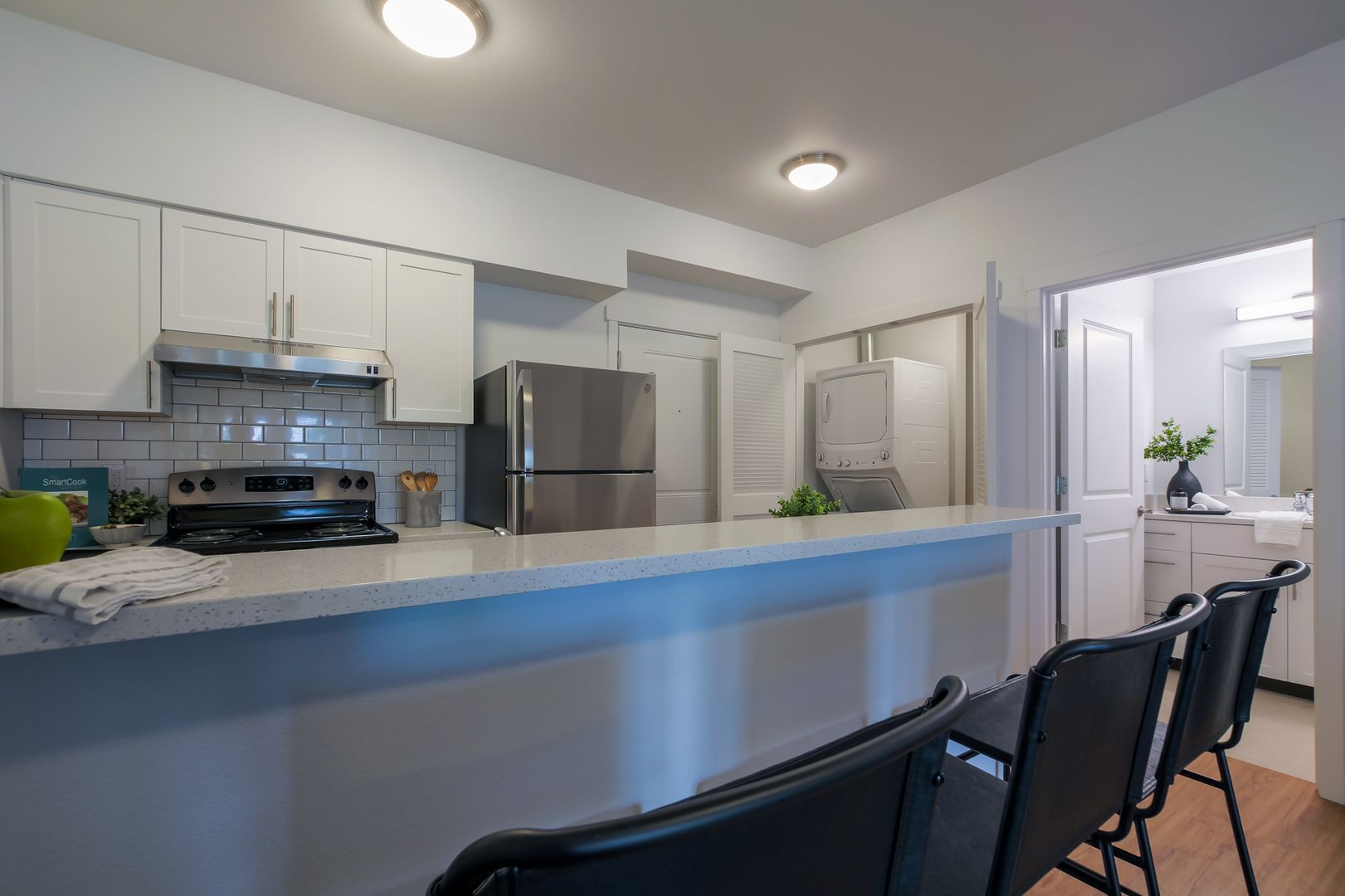 The L39 Apartments is a controlled access building and conveniently located off N Lombard Street in Portland's coveted St. Johns neighborhood, this building is perfect for you! These apartment homes offer stainless-steel appliances, fully equipped kitchen, modern fixtures, heating and air conditioning, bike storage, a private patio or balcony depending on location within the building, hardwood like flooring, controlled access, Amazon Hub locker, and your own washer and dryer inside your new home – say goodbye to laundromats!